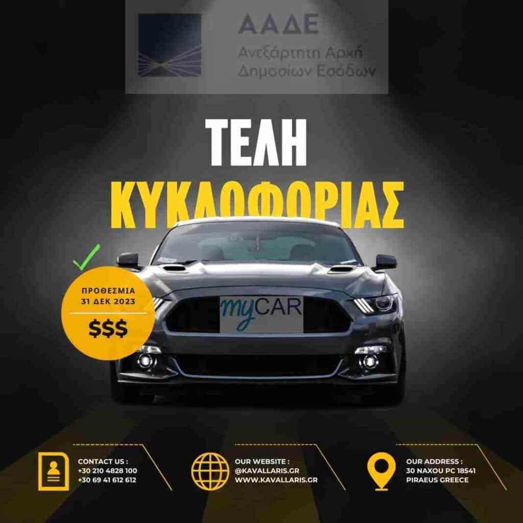 Η προθεσμία για την εμπρόθεσμη καταβολή των τελών κυκλοφορίας έτους 2023, λήγει την 31-12-2022