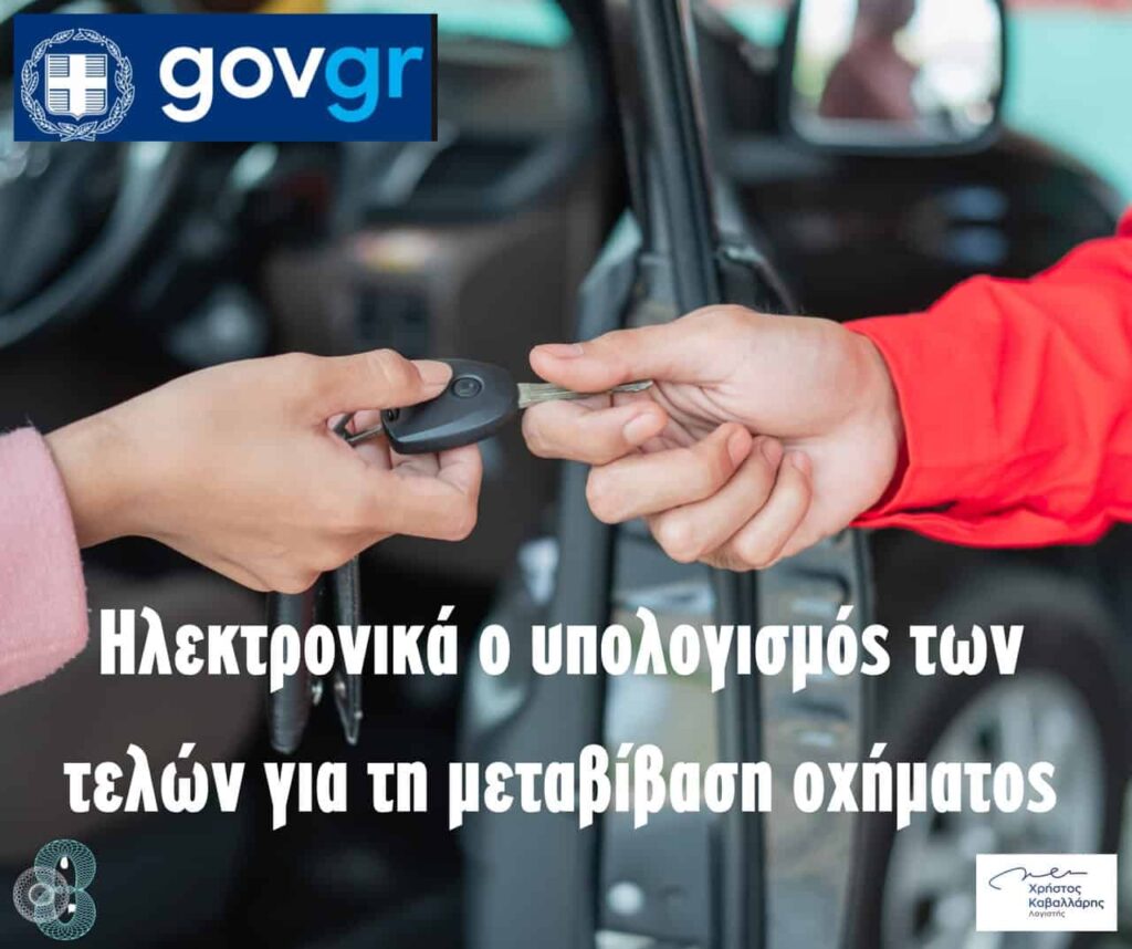 - Με τη νέα υπηρεσία οι πολίτες μπορούν πλέον να υπολογίζουν τα τέλη (αδείας και μεταβίβασης) που απαιτούνται για τη μεταβίβαση οχήματος.